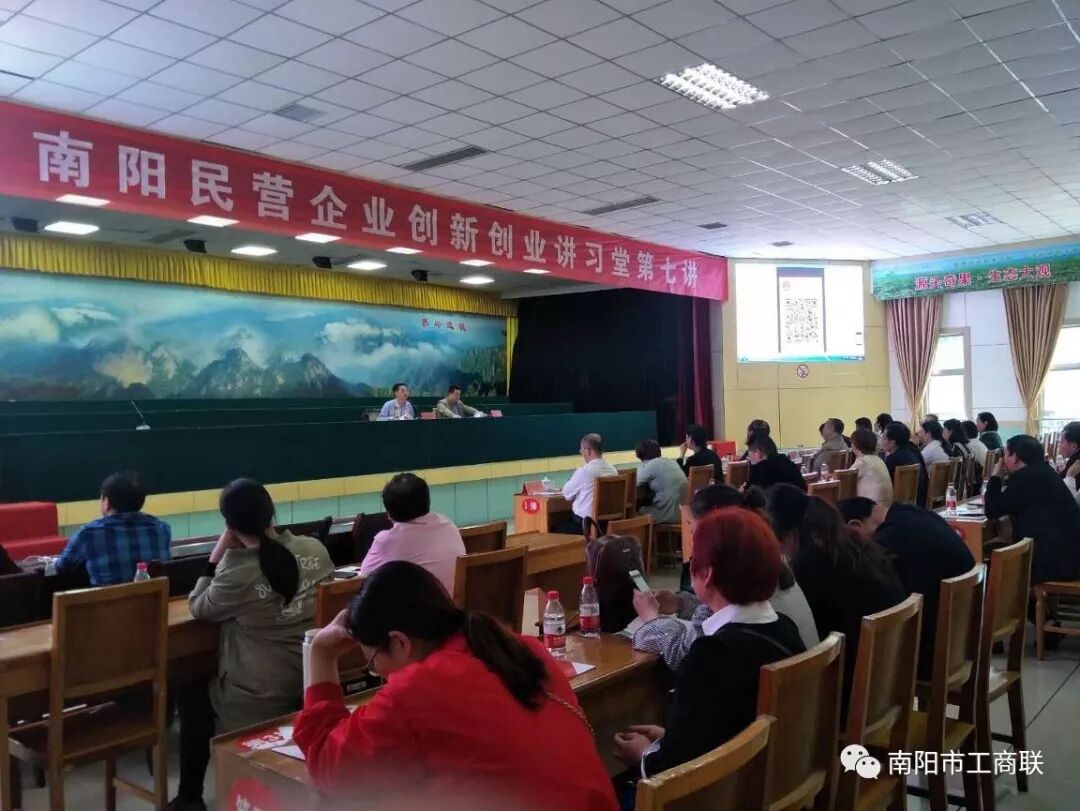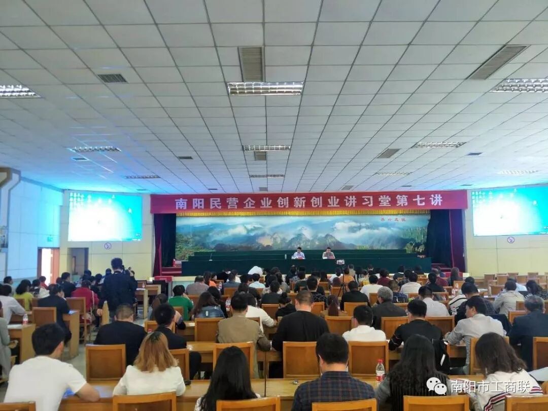 4月27日,由南阳市工商联、南阳市科技局主办的南阳民营企业创新创业讲习堂(第七讲)在西峡县成功举办,南阳市工商联副主席魏剑理,市科技局科技信息中心主任贺晨阳莅临讲堂,西峡县委常委、统战部长袁璋主持讲座,河南省民营经济发展服务中心常务副主任、信息技术总工程师李锋、育龙公司董事长赵毅宸分别做了主题分享,西峡县、淅川县的近300家民营企业负责人参加讲座。