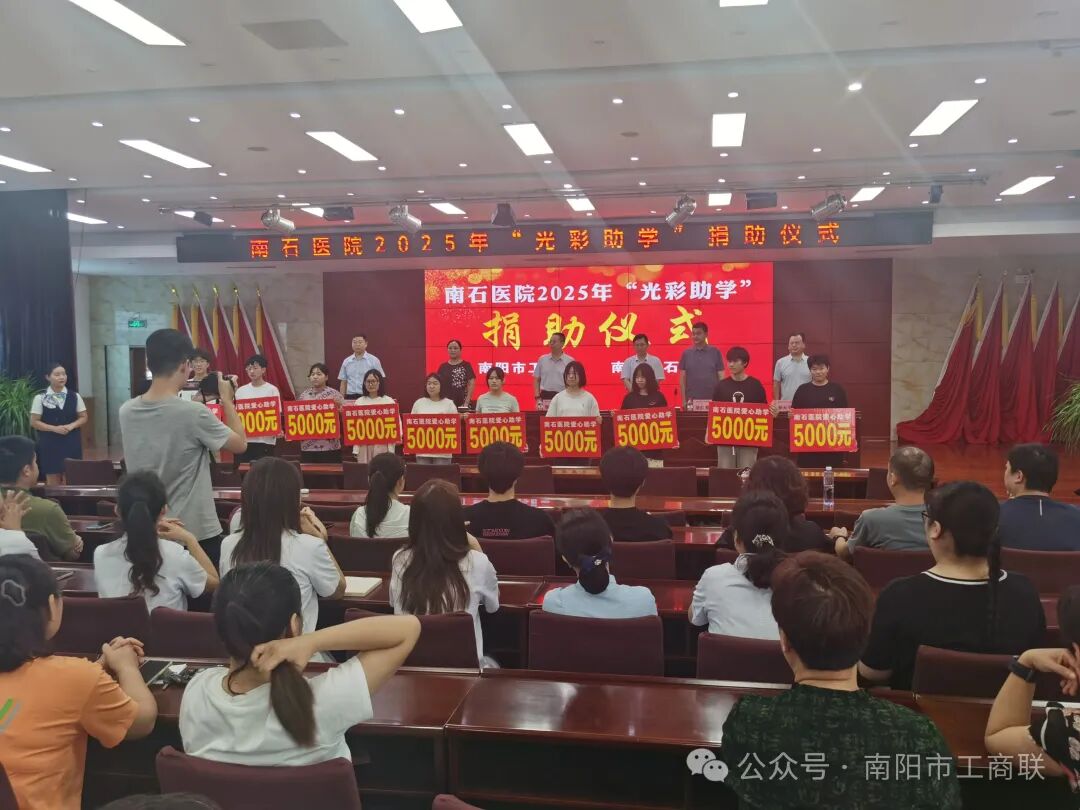 8月13日,市工商联、南石医院联合举行2025年“光彩助学”捐助仪式,向10位家庭困难的学生每人发放助学金5000元。