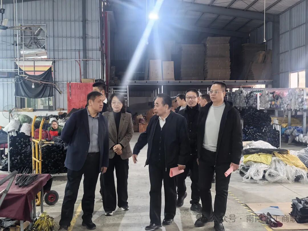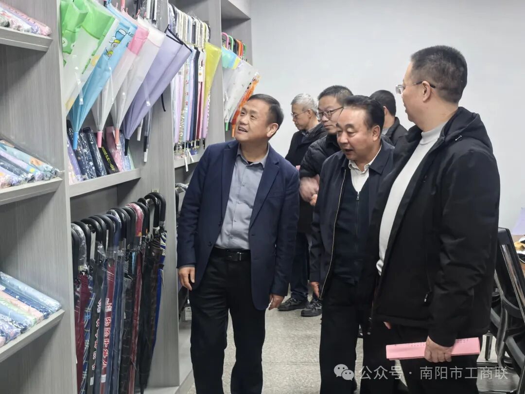 陈占亭一行先后走访了南阳山东商会、邓州市锐宇伞业有限公司、邓州市荣冠农业科技有限公司,实地查看了商会办公场地、助农直播间以及企业生产车间、智慧农业中心,与企业(商会)负责人进行交流,详细了解企业(商会)在参与乡村振兴、产业发展、带农增收等方面情况,并听取了我市“万企兴万村”行动工作情况汇报。