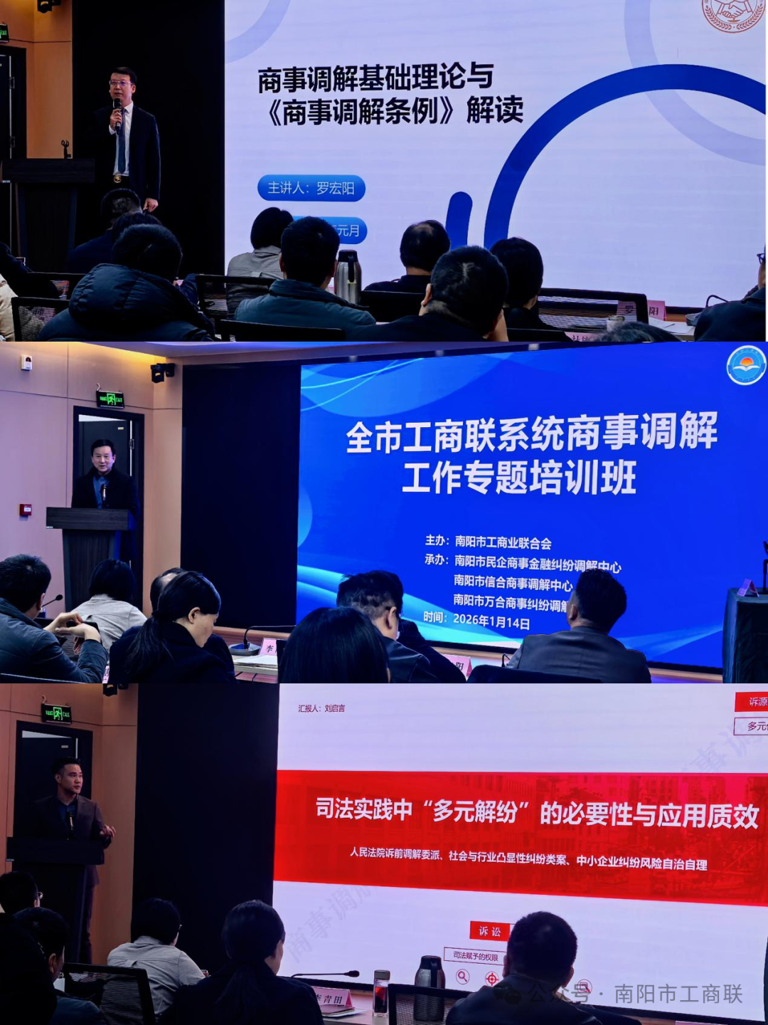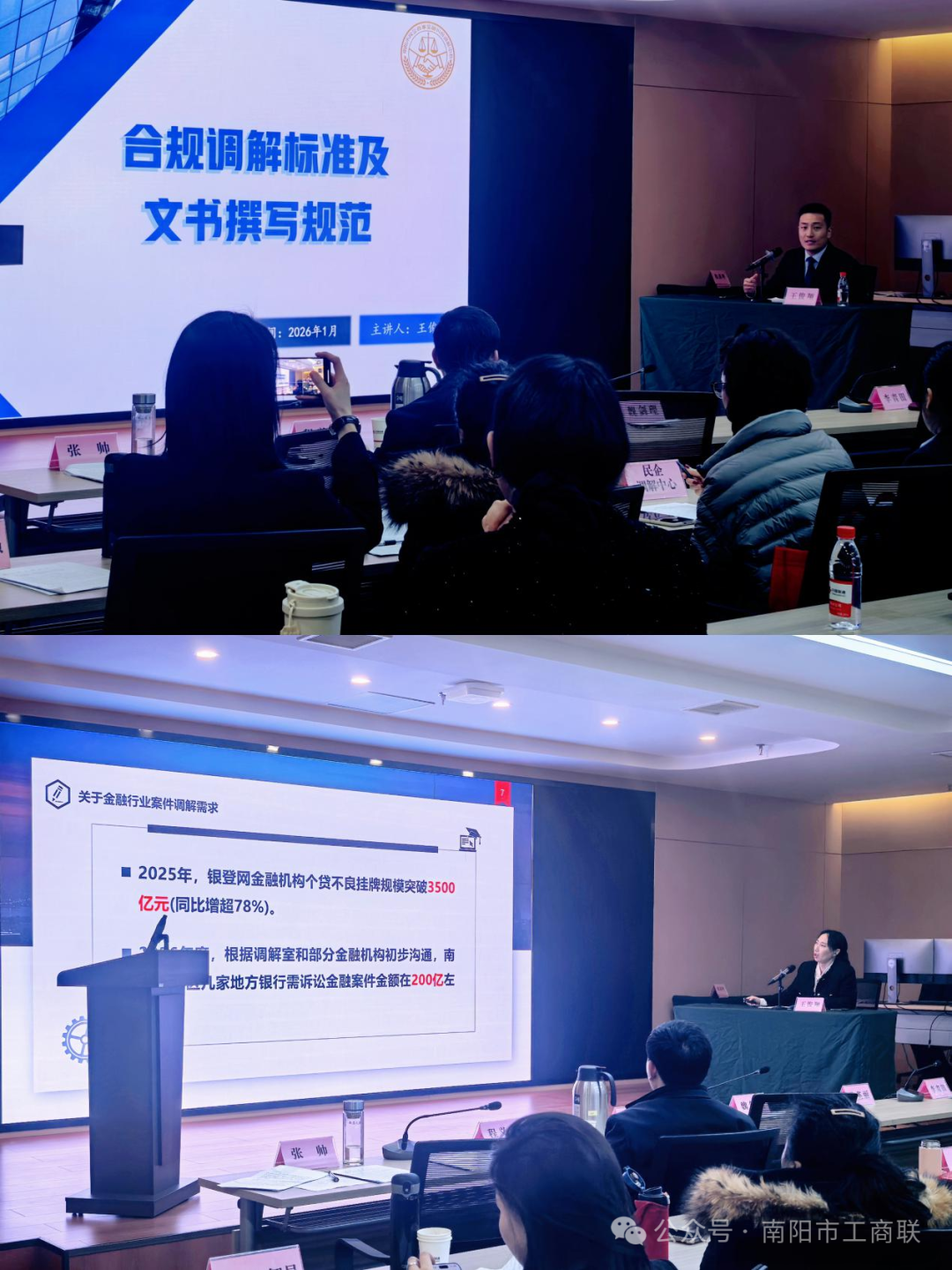 南阳市民企商事金融纠纷调解中心副主任王俊翔讲解了调解合规要求与法律文书撰写要点;南阳市民企商事金融纠纷调解中心金融一部主任刘书玉结合实务分享了银行业务对接的流程、常见问题与解决方案。
