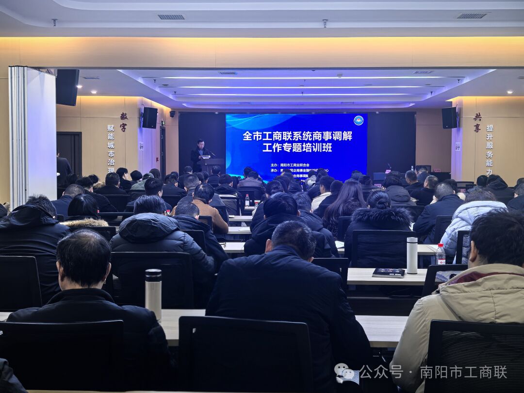 为深入学习贯彻《商事调解条例》,进一步提升我市工商联系统商事调解工作法治化、专业化水平,1月14日,市工商联举办全市工商联系统商事调解工作专题培训班,市工商联主席常英丽出席并作动员讲话,市工商联党组成员、副主席魏剑理出席并作专题辅导,各县市区工商联分管领导,市、县(区)工商联所属商事调解组织负责人、调解员,市工商联直属商会调解员共120余人参加。
